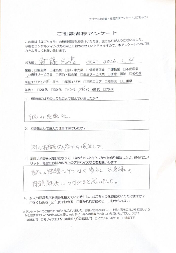 【ご記入日】2026.2.4 【所在エリア】名古屋市 【年代】50代